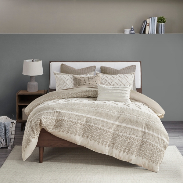 Grey And Whitet200 Cotton Duvet Set With Cushions